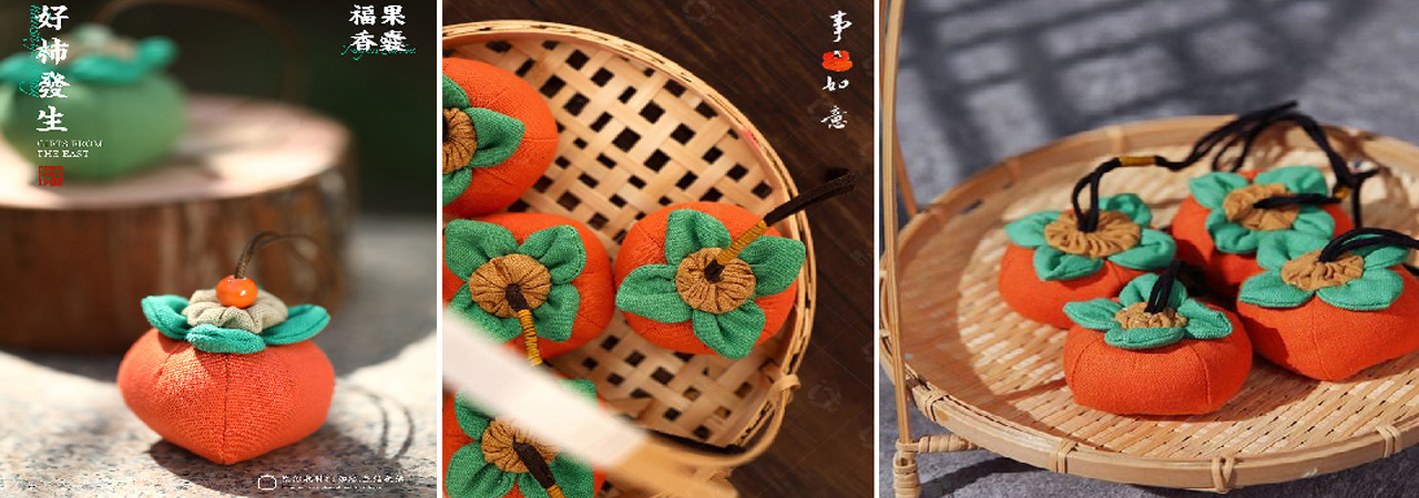 “柿柿”如意、万“柿”大吉、万“柿”胜意、好“柿”常在……都是取自“柿”的谐音之意。希望参与亲手缝制柿子香囊的你,收获所有的美好心愿。